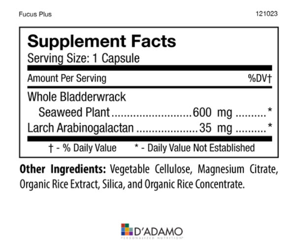 This plant was grown and harvested by trained marine botanists and immediately freeze-dried to preserve its molecular integrity. Fucus Plus is suitable for all blood types but may be particularly beneficial to blood type O individuals to help support a healthy digestive system. Bladderwrack may also provide specific benefits, such as helping to maintain a healthy overall body composition and supporting immune system health.