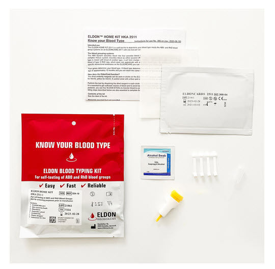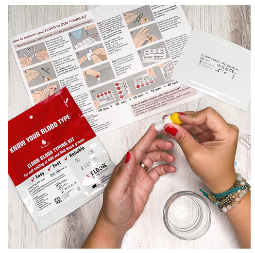 Safe and easy to use, our updated Original Home Blood-Typing Kit now has a new type of lancet for improved function and a clear plastic sheet for protecting the EldonCard with your test results. Now everything you need to determine your blood type has just gotten better.