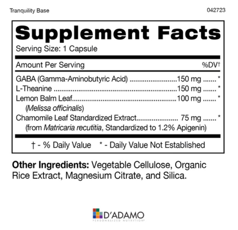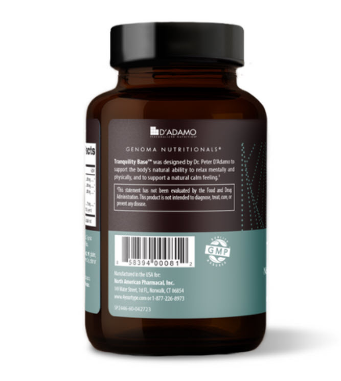 Tranquility Base is uniquely formulated for men and women of all blood types and GenoTypes to help support mental and physical relaxation, while decreasing the effects of occasional stress. It is designed to calm hyperactive alpha waves in the brain to encourage calm and sleep. It contains the ingredients GABA, L-Theanine, Lemon Balm Leaf and Chamomile Leaf Extract.