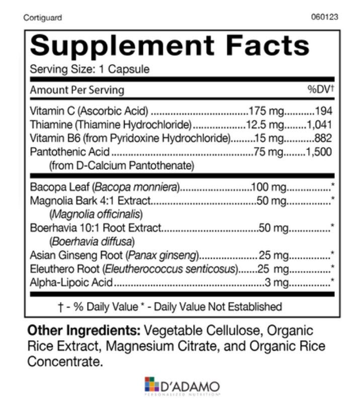 Cortiguard helps to maintain a healthy hormonal response to occasional stress. Studies have revealed that cortisol levels rise faster and have a slower elimination phase in Blood Types A and B than in other blood types. Cortiguard can support nervous system health and strengthen resistance to the physical effects of occasional stress, especially in Blood Types A and B.